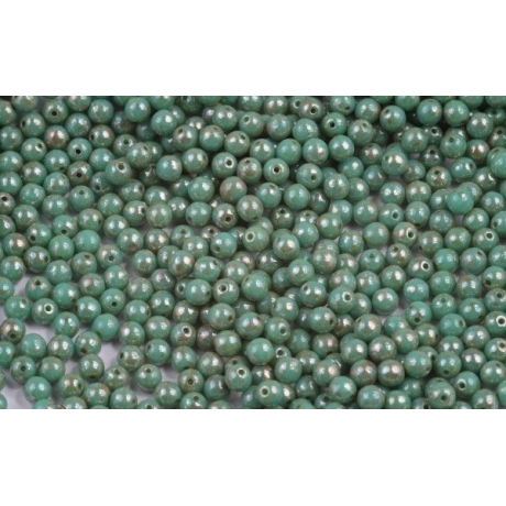 Tyrkysově zelený odstín s nezaměnitelnou patinou Picasso vdechuje těmto skleněným korálkům o rozměru 4 mm organický a přírodní vzhled. Tradiční rodinná firma Rutkovský vyrábí tyto kulaté korálky (Round Beads) v České republice pomocí ručního lisování, což zaručuje jejich vysokou kvalitu a precizní zpracování typické pro české sklářství. Pro zajímavý vizuální kontrast je můžete v náhrdelnících doplnit o voskované perličky, čímž vytvoříte luxusní šperk s kombinací jemného lesku a matné textury. Balení obsahuje 60 ks korálků, které jsou ideální pro tvorbu etno náramků i minimalistických doplňků.