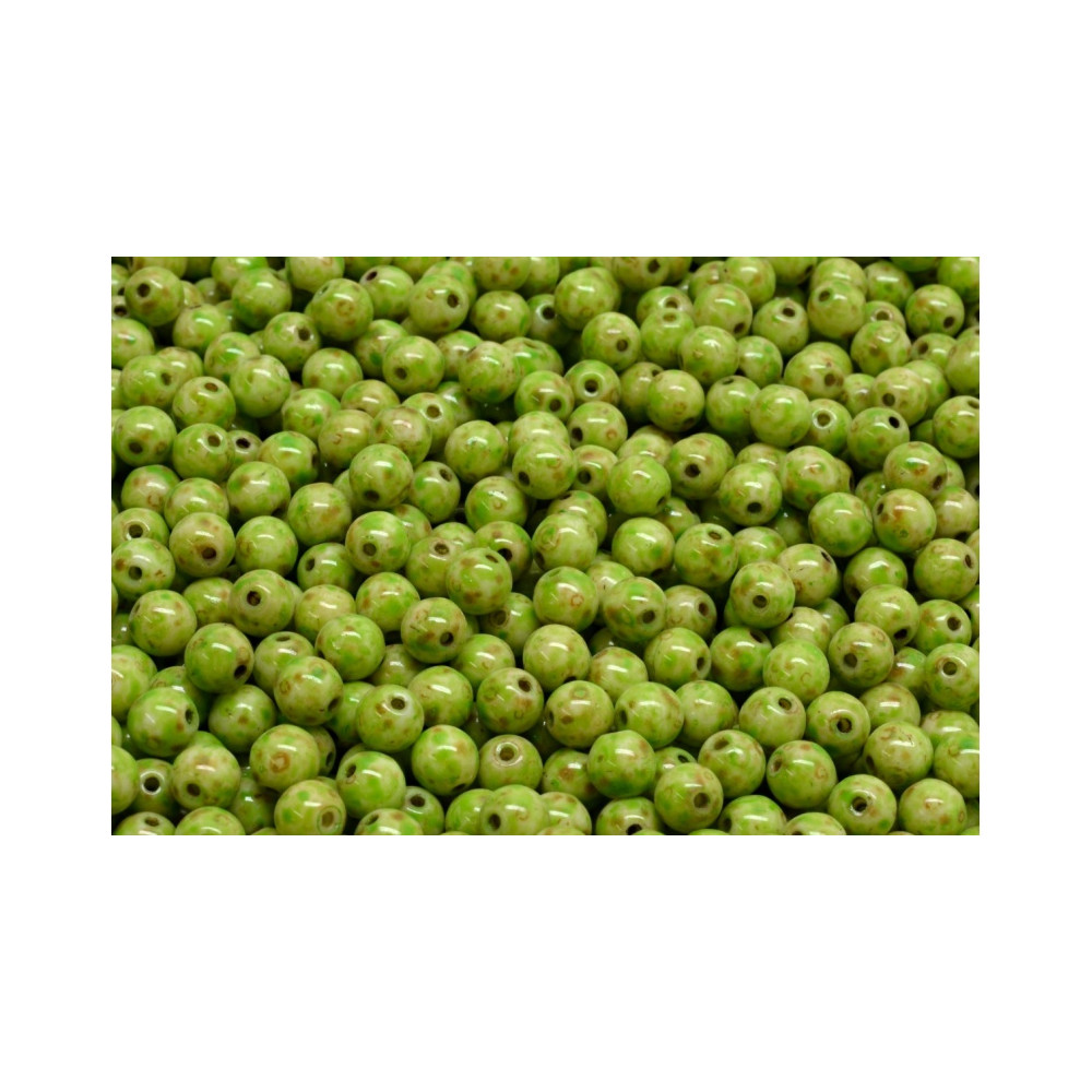 Svěží zelená barva s jemným mramorováním definuje tyto skleněné korálky kuličky o průměru 4 mm z dílny rodinné firmy Rutkovský. Tradiční české sklářství a ruční výroba dávají těmto prvkům jedinečný charakter, který nejlépe vynikne při navlékání náhrdelníků v kombinaci s materiály jako jsou voskované perličky. Pro dosažení jemného a čistého designu doporučujeme tyto kuličky párovat s harmonickými opálovými nebo mléčnými tóny.