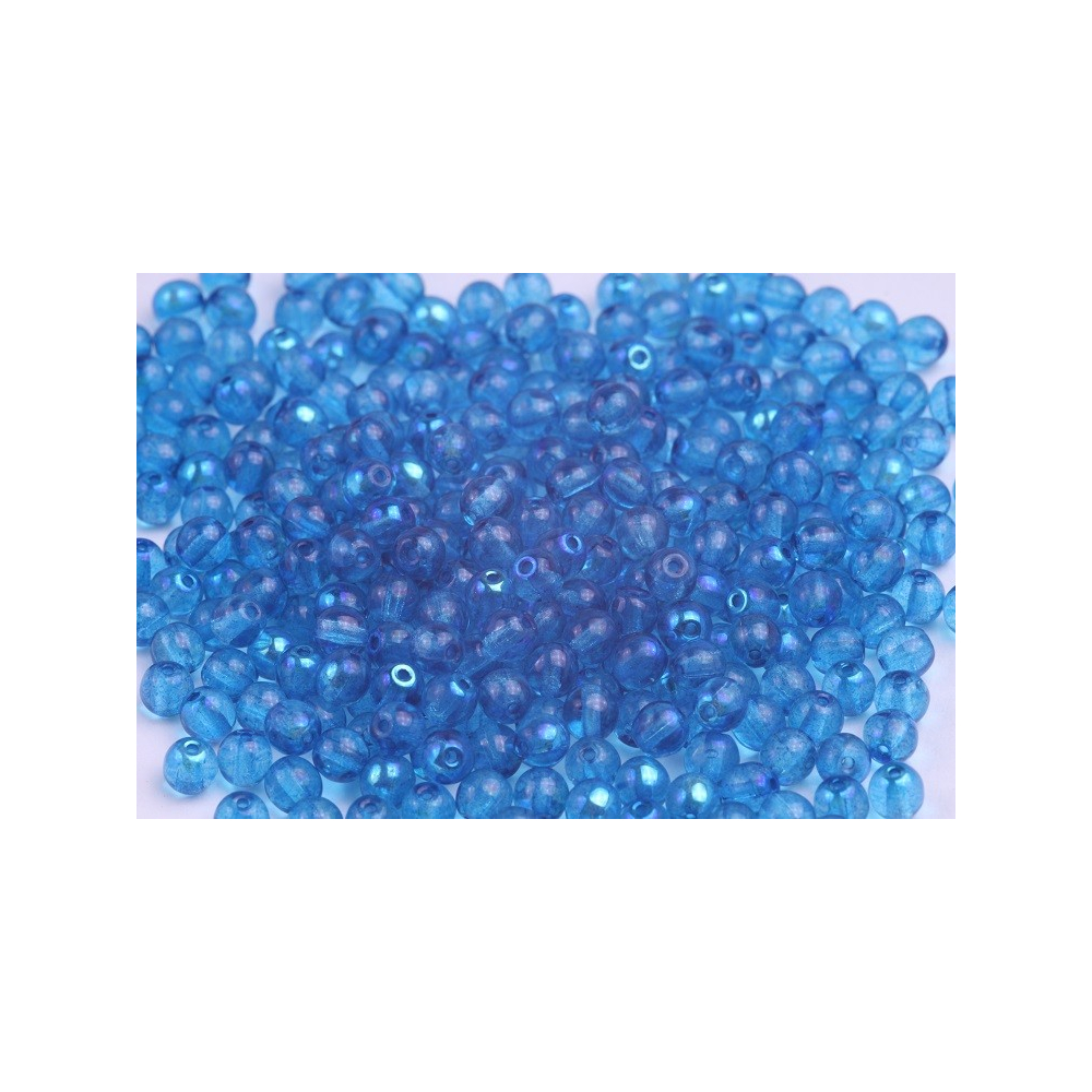 Zářivě modrá barva s jemným duhovým odleskem definuje tyto klasické skleněné Round Beads 4 mm z dílny rodinné firmy Rutkovský. Průhledný základ skla v kombinaci s povrchovou úpravou AB vytváří v designu šperků hloubku a hravou dynamiku, kterou oceníte zejména při vrstvení náramků nebo tvorbě elegantních náhrdelníků.