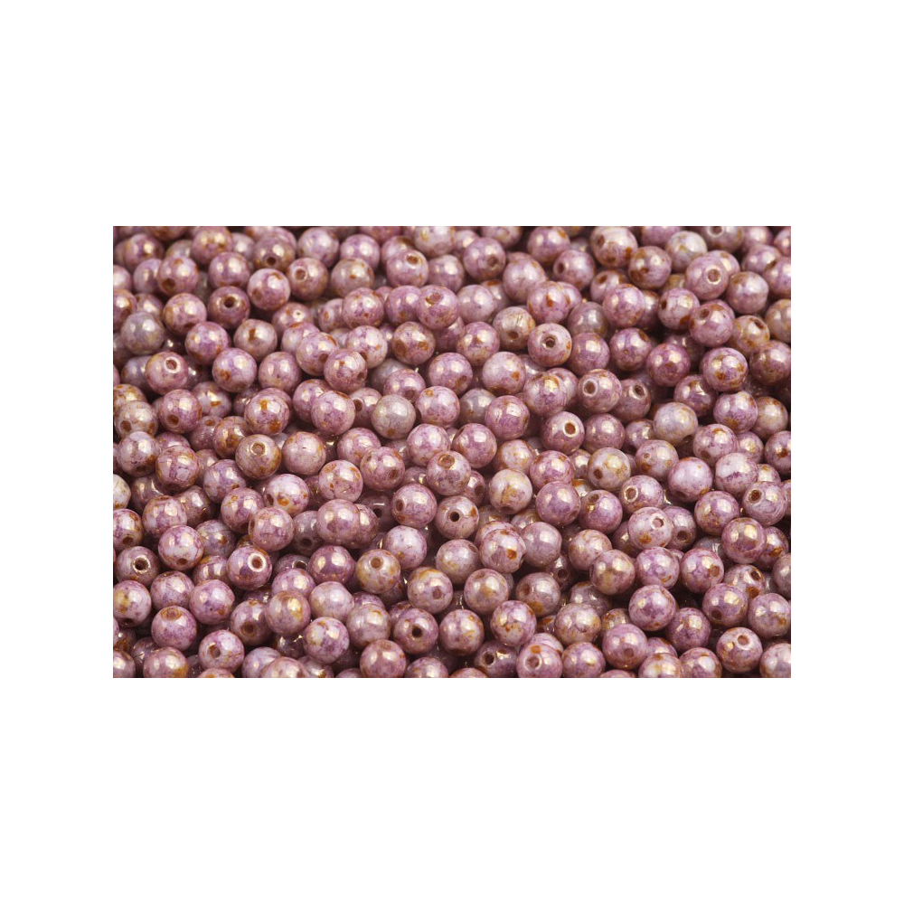 Lila odstíny s jemným mramorováním tvoří základ těchto skleněných korálků v klasickém tvaru Round Beads 4 mm.