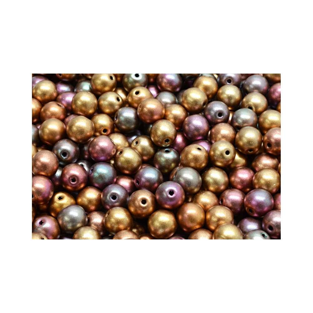 Metalický povrch s nádechem mědi a zlata vynikne zejména v promyšlených barevných kompozicích. Krásně ladí se safírově modrou pro výrazný kontrast, případně s šedou a bronzovou pro docílení harmonického, zemitého vzhledu. Tyto Round Beads jsou díky svému přesnému tvaru vhodné pro klasické návleky i složitější šité šperky, kde oceníte jejich mechanickou odolnost a stálost barevného efektu.