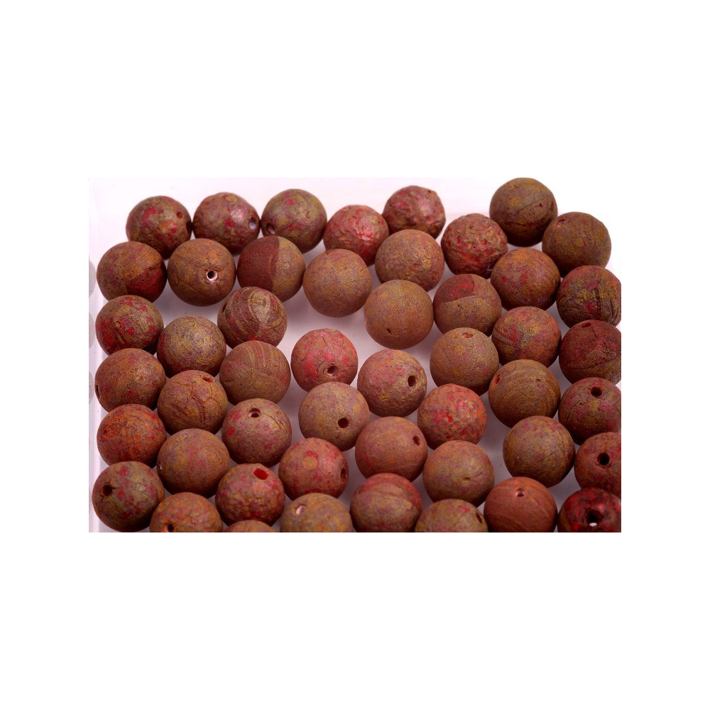 Terakotově červené odlesky mísící se s hlubokou texturou připomínají horkou půdu v západu slunce. Tyto ručně mačkané skleněné korálky od rodinné firmy Rutkovský přinášejí do vaší tvorby kus poctivého českého řemesla a tradice, která sahá hluboko do historie sklářství. Povrchová úprava Red Travertin Etch dodává každé kuličce jedinečný, lehce rustikální vzhled s nezaměnitelným přírodním charakterem.