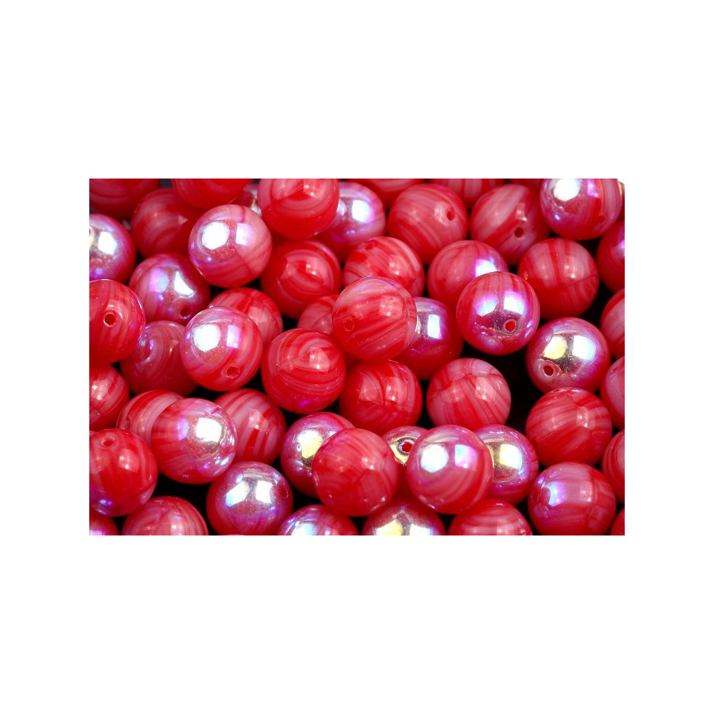 Červená barva s podmanivými bílými spirálami a perleťovým leskem okamžitě upoutá pozornost každé tvůrkyně, která hledá pro své projekty něco skutečně výjimečného. Tato sytá varianta s AB efektem vnáší do bižuterie dynamiku, protože mramorovaný vzor dělá z každého kusu unikátní originál.