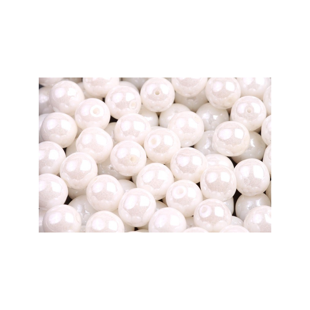 České sklo je celosvětově uznávané pro svou čirost a odolnost, čehož jsou tyto kuličky jasným důkazem. Povrchová úprava luster dodává bílému podkladu vizuální hloubku a jemné odlesky, které dynamicky reagují na dopadající světlo. Při výrobě v dílně Rutkovský se klade důraz na přesné zachování tvaru a hladký průtah o průměru 0,8 mm, což usnadňuje následnou manipulaci při tvoření a chrání návlekový materiál před poškozením.