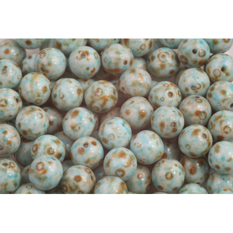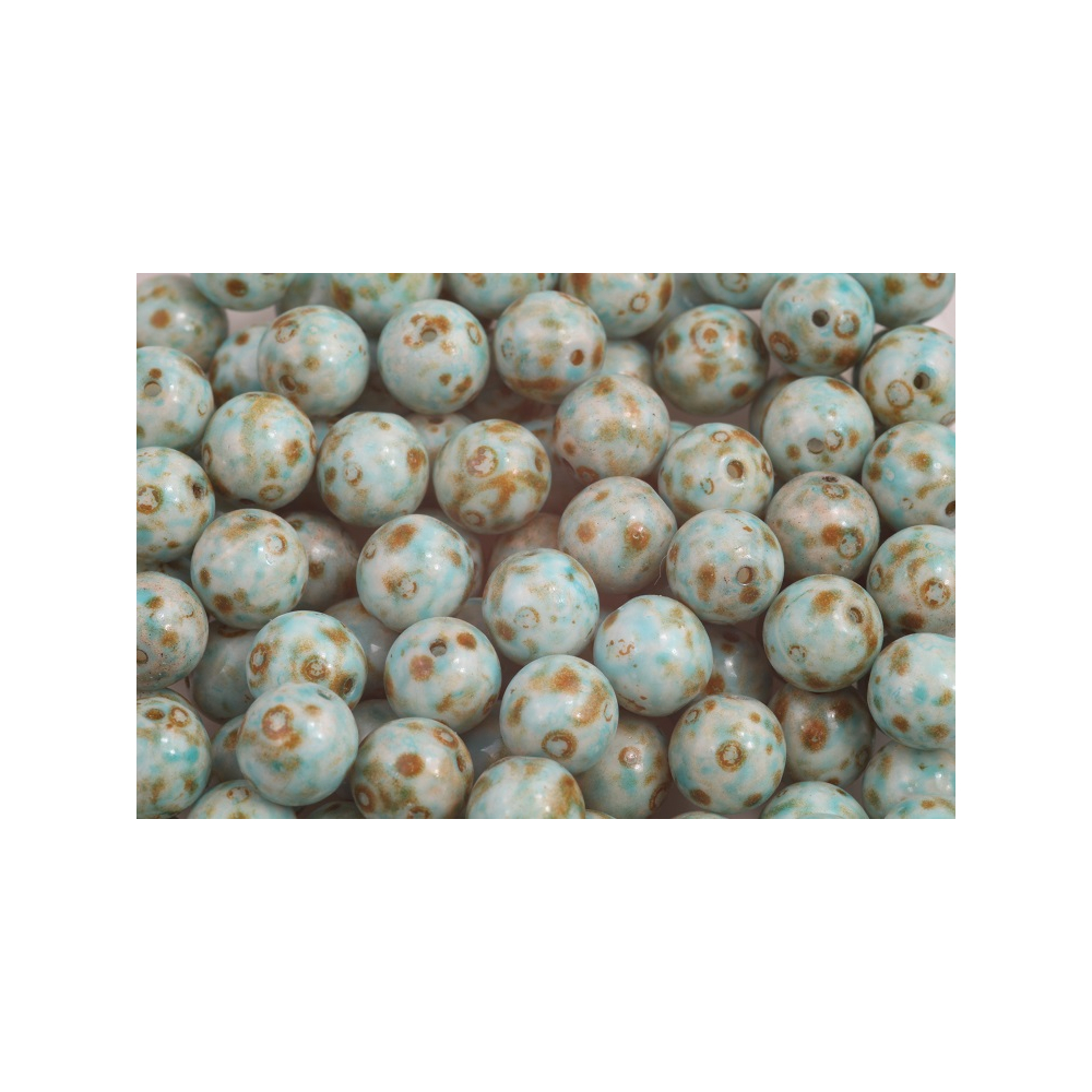Technika lisování skla za tepla umožňuje vytvořit dokonalý tvar kuličky, který je základním kamenem pro každého tvůrce bižuterie. Tyrkysové kuličky s patinou vyniknou zejména v kombinaci s minerály, dřevěnými komponenty nebo jemným rokajlem Preciosa ve velikostech 8/0 a 10/0. Díky preciznímu zpracování mají korálky hladký průtah, což usnadňuje navlékání na různé typy návlekových materiálů.