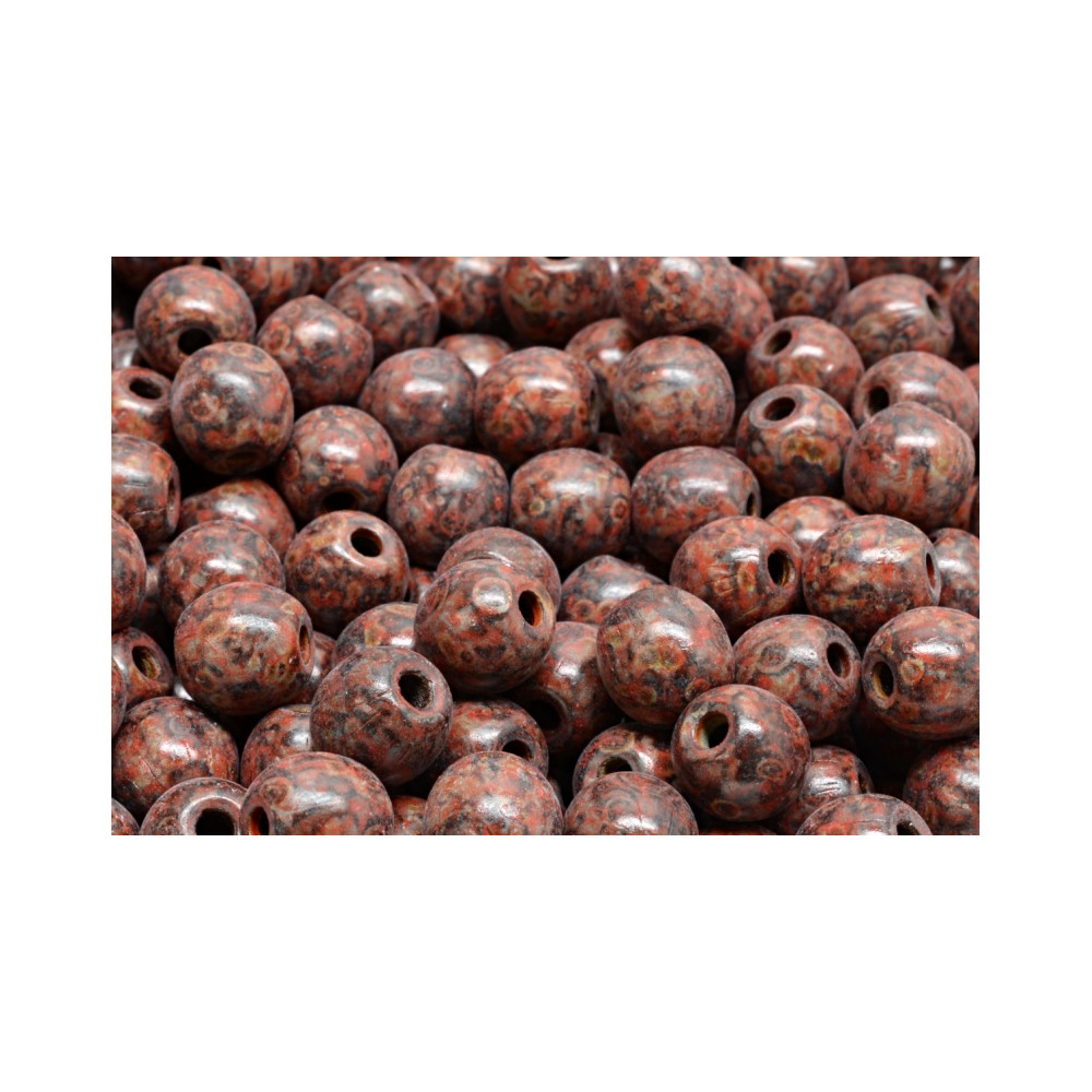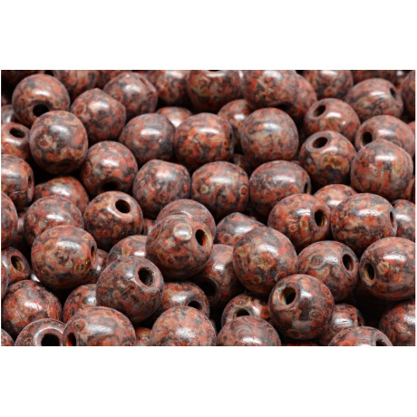 Hnědo-červené Round Beads s unikátním mramorováním typu Picasso efektivně imitují vzhled vzácných minerálů a polodrahokamů. Tato hnědá barva v kombinaci s temně vínovými tóny dodává každému kusu designu hloubku a organický charakter, který je v současném šperkařství velmi žádaný.