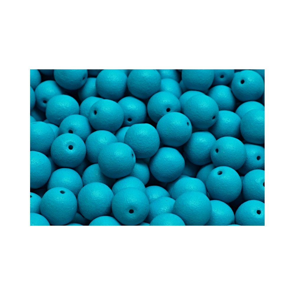 Matná povrchová úprava v odstínu tyrkysové aktuálně dominuje trendům v oblasti autorské bižuterie a doplňků inspirovaných přírodou. Pro jemné oddělení jednotlivých prvků v náhrdelníku skvěle poslouží rokajl Preciosa, který podtrhne geometrickou čistotu tvaru kuliček. Tento typ korálků je díky své všestrannosti nepostradatelným prvkem pro každého designéra, který hledá poctivý materiál od Rutkovský, Česká republika, s hlubokou rodinnou historií.