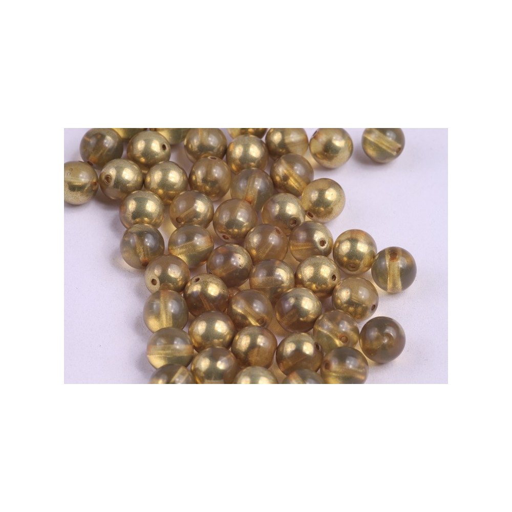 Zlatý odlesk těchto ručně mačkaných skleněných kuliček vnáší do každého šperku kousek historie z dílny rodinné firmy Rutkovský. Tradiční české sklářství se zde promítá do precizního kulatého tvaru o průměru 8 mm, který v designu krásně doplní české broušené ohňovky díky poutavému kontrastu hladkých a broušených ploch.