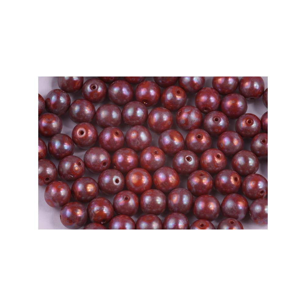 Hluboký vínový odstín s fascinujícím iridescentním efektem definuje tyto skleněné Round Beads z dílny rodinné firmy Rutkovský. Každá kulička o průměru 8 mm nese stopy tradičního českého řemesla a precizního ručního lisování, které zajišťuje vysokou kvalitu a jedinečnost každého kusu. Povrchová úprava Nebula vytváří na povrchu korálku syté odlesky, které mění barvu podle úhlu dopadu světla a dodávají šperku mystickou hloubku.