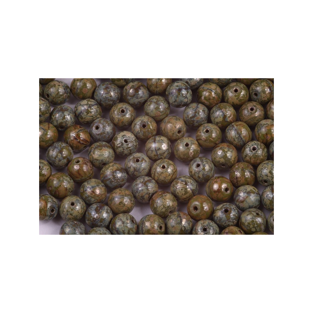 Olivově zelený odstín s nezaměnitelnou povrchovou úpravou Picasso definuje tyto skleněné korálky kuličky, které pocházejí z dílny rodinné firmy Rutkovský. Tradiční české sklářství se zde projevuje v precizním zpracování každého kusu, přičemž ruční lisování zajišťuje vysokou kvalitu a unikátní charakter. Tyto Round Beads o průměru 8 mm jsou ideální pro tvorbu etno šperků nebo doplňků inspirovaných přírodou, kde vynikne jejich zemitá textura. Pro jemné doladění detailů a plynulé přechody se skvěle hodí drobný rokajl Preciosa, který mezi kuličkami poslouží jako elegantní oddělovač.