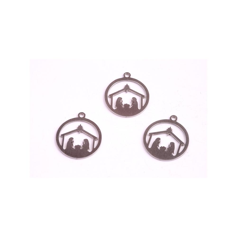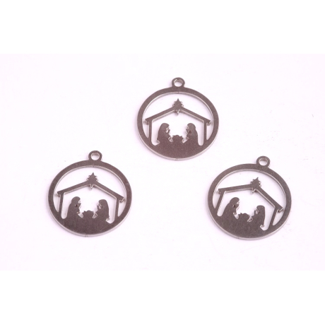 Tento nádherný betlémský přívěsek je vyroben z kvalitního nerez kovu a dokončen ve světle šedé barvě oceli, což přináší eleganci a klidnou atmosféru svátečních dnů. S rozměry 15x16.5x0.8 mm je přívěsek akorát velký, aby upoutal pozornost, ale zůstal decentní a vhodný pro nošení během celé sváteční sezóny.