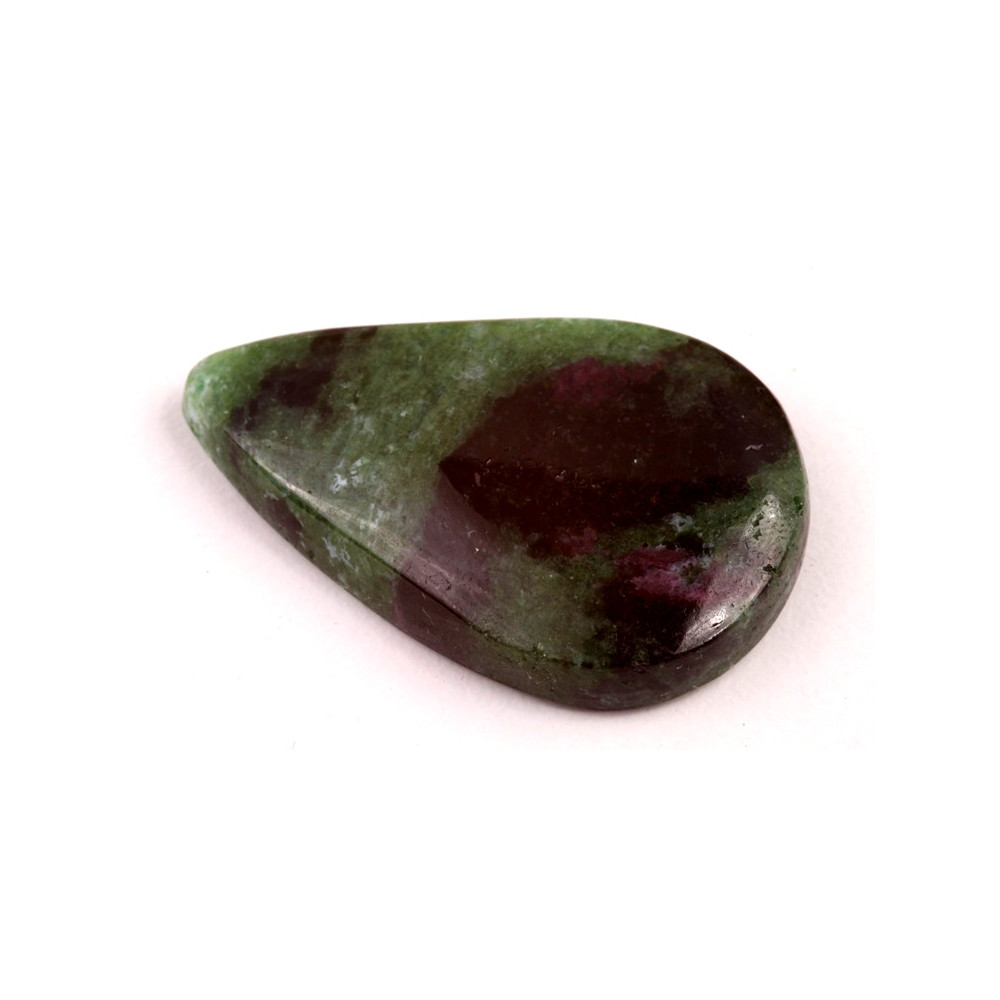Ruby Zoisite (rubín v zoisitu) ve tvaru kabošonu je fascinující kámen, který kombinuje sytě červené rubínové inkluze s jemnými zelenými a černými tóny zoisitu. Tento kontrast barev z něj činí jedinečný a výrazný kousek, který je oblíbený ve šperkařství i pro své symbolické vlastnosti.
