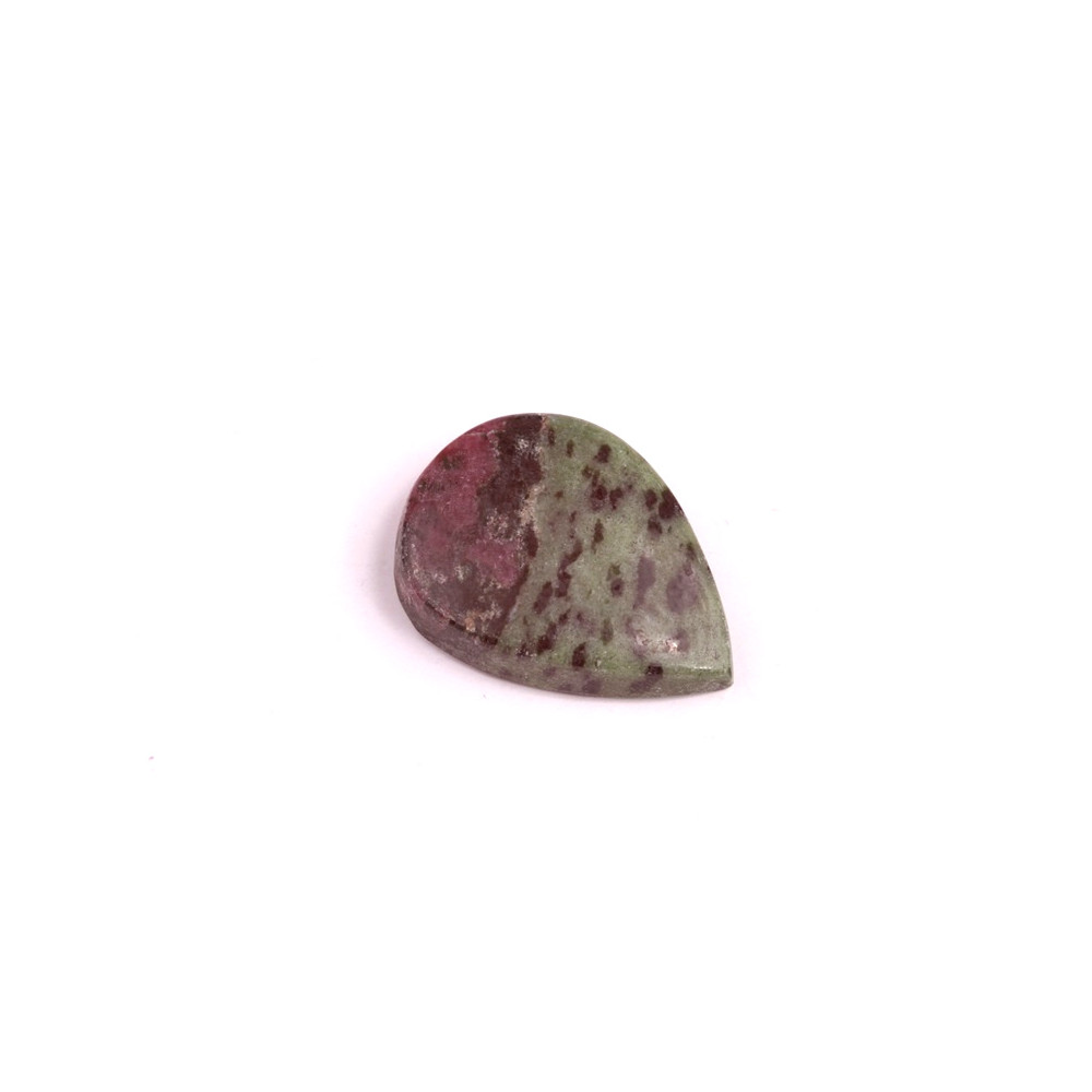 Ruby Zoisite (rubín v zoisitu) ve tvaru kabošonu je fascinující kámen, který kombinuje sytě červené rubínové inkluze s jemnými zelenými a černými tóny zoisitu. Tento kontrast barev z něj činí jedinečný a výrazný kousek, který je oblíbený ve šperkařství i pro své symbolické vlastnosti.