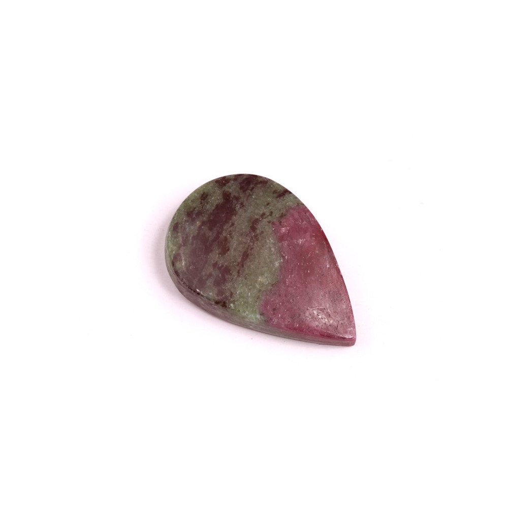 Ruby Zoisite (rubín v zoisitu) ve tvaru kabošonu je fascinující kámen, který kombinuje sytě červené rubínové inkluze s jemnými zelenými a černými tóny zoisitu. Tento kontrast barev z něj činí jedinečný a výrazný kousek, který je oblíbený ve šperkařství i pro své symbolické vlastnosti.