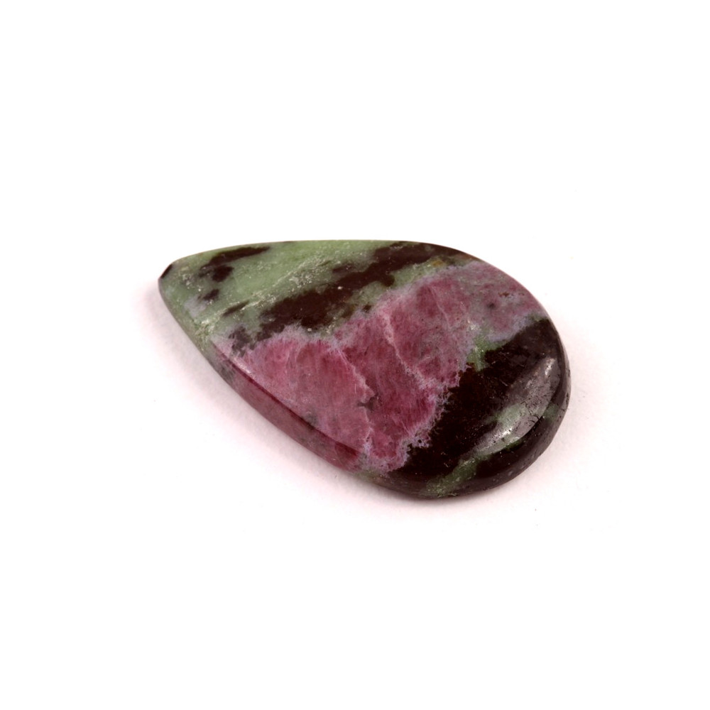 Ruby Zoisite (rubín v zoisitu) ve tvaru kabošonu je fascinující kámen, který kombinuje sytě červené rubínové inkluze s jemnými zelenými a černými tóny zoisitu. Tento kontrast barev z něj činí jedinečný a výrazný kousek, který je oblíbený ve šperkařství i pro své symbolické vlastnosti.
