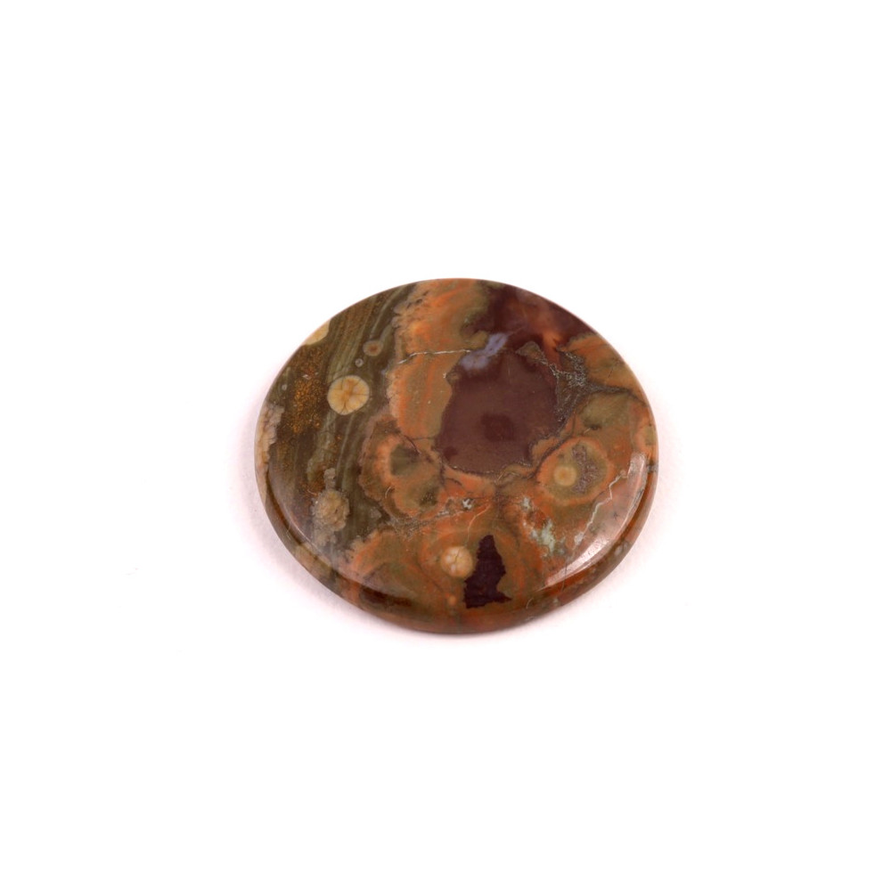 Kabošon z přírodního kamene Mushroom Rhyolite (Houbový Ryolit, USA) Velikost cca 32x28x5 mm...