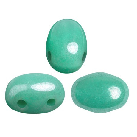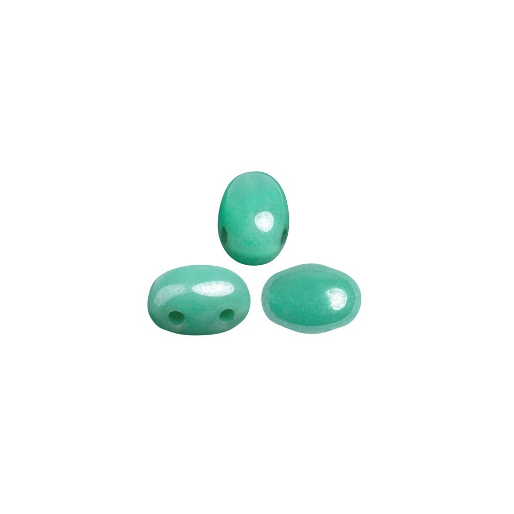 Samos® par Puca® ve svěžím odstínu OPAQUE GREEN TURQUOISE LUSTER představují elegantní oválný tvar se dvěma průtahy, který je ideální pro složité prostorové konstrukce i ploché vzory. Tento český skleněný korálek o rozměru 5 x 7 mm vyniká svou sytou tyrkysovou barvou a jemným povrchovým leskem, který dodává hotovým šperkům luxusní a profesionální vzhled.