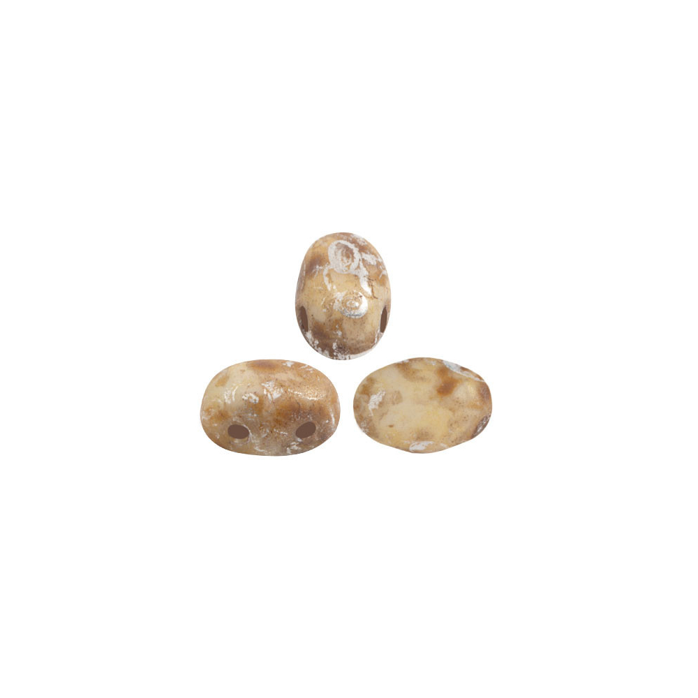Rozměry 5 x 7 mm a precizní dvoudírkové provedení s průtahem 0,8 mm definují tyto unikátní korálky Samos® par Puca®, které jsou základním kamenem pro pokročilý beadweaving. Tento tvar, vytvořený z kvalitního českého mačkaného skla, vyniká svou stabilitou a perfektní geometrií, což umožňuje vícenásobný průchod nití korálkem bez rizika prasknutí. Pro dosažení nejlepších výsledků při šití doporučujeme používat vysoce pevné polyethylenové nitě S-lon FIRE v kombinaci s korálkovací jehlou velikosti 10 nebo 12. Tyto korálky v odstínu Opaque White Mat Rembrandt s výraznými béžovými tóny skvěle fungují jako strukturální prvek, kdy se často využívá drobný rokajl Preciosa jako funkční výplň mezi jednotlivými dílky vzoru.