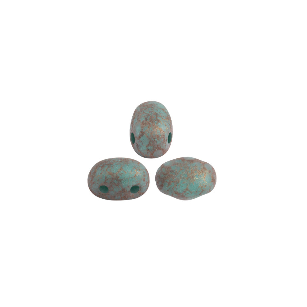 Představte si letní večer na francouzské Riviéře, kde se tyrkysové moře potkává s antickým bronzem pobřežních skal. Přesně takovou atmosféru vnáší do kreativních projektů Samos® par Puca® v podmanivém odstínu neprůhledné tyrkysové s bronzovou patinou. Tento jedinečný korálek ve tvaru oválného kabošonu o rozměru 5 x 7 mm představuje dokonalé spojení french designu návrhářky Annick Puca a precizní české sklářské tradice. Pro stabilní strukturu šitých vzorů doporučujeme použít rokajl Preciosa, který poslouží jako ideální výplň mezi geometrickými tvary.