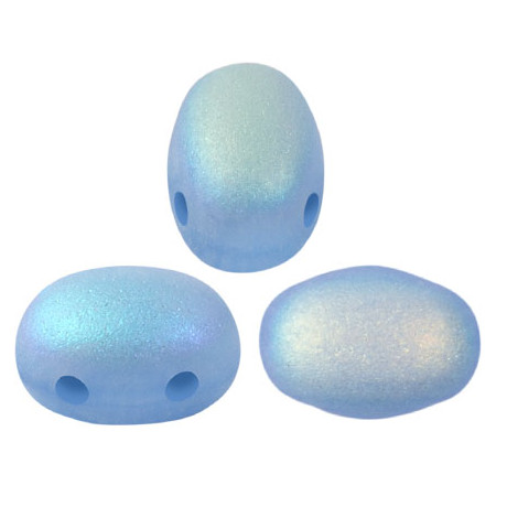 Rozměr 5 x 7 mm a dva paralelní otvory korálků Samos® par Puca® umožňují precizní geometrické skládání při tvorbě náročných šitých šperků. Tato světle modrá varianta s povrchovou úpravou Blue Opal AB Mat se vyznačuje jemným zmatněním, které pohlcuje přímé světlo a nahrazuje jej decentním duhovým odleskem, což dodává hotovému dílu hloubku a sofistikovanost.