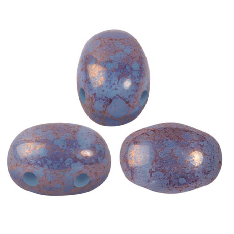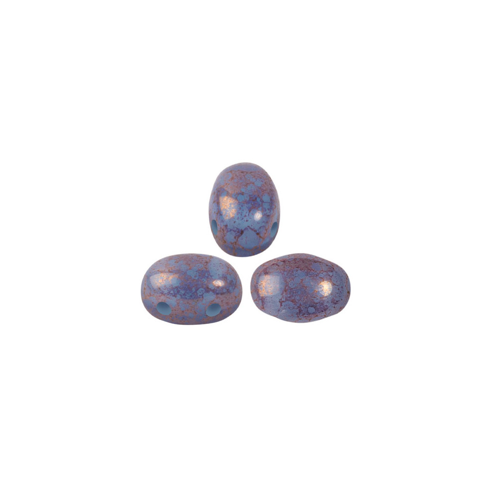 Modro-bronzová paleta těchto mačkaných perlí vnáší do autorské tvorby nádech francouzské elegance i české sklářské tradice. Oválné korálky Samos® par Puca® o rozměrech 5 x 7 mm vynikají jemným modrým základem s nepravidelným bronzovým mramorováním, které dodává každému šperku hloubku a organický vzhled. Díky dvěma paralelním dírkám jsou ideální pro techniku bead weaving, kde se skvěle uplatní jako elegantní Cabochon® par Puca® pro rámování větších prvků nebo vytváření složitých prostorových struktur.