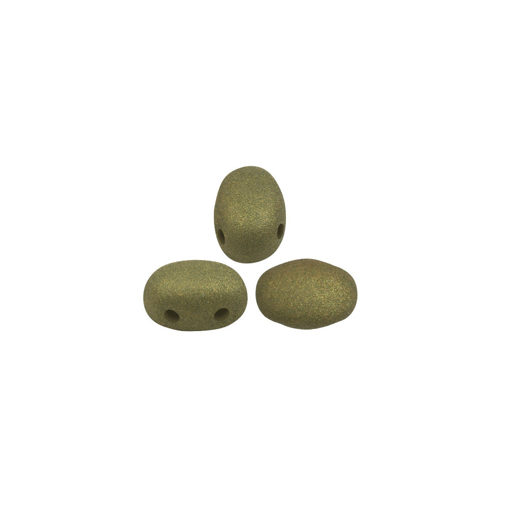 Samos® par Puca® č. 264 v odstínu Trendy Olive Mat představují unikátní oválný tvar o rozměrech 5 x 7 mm se dvěma paralelními průtahy o průměru 0,8 mm. Tato geometrická přesnost mačkaného skla umožňuje tvůrcům dosáhnout dokonalé symetrie v náročných vzorech šitého šperku, kde je vyžadována stabilita a precizní usazení jednotlivých komponentů.