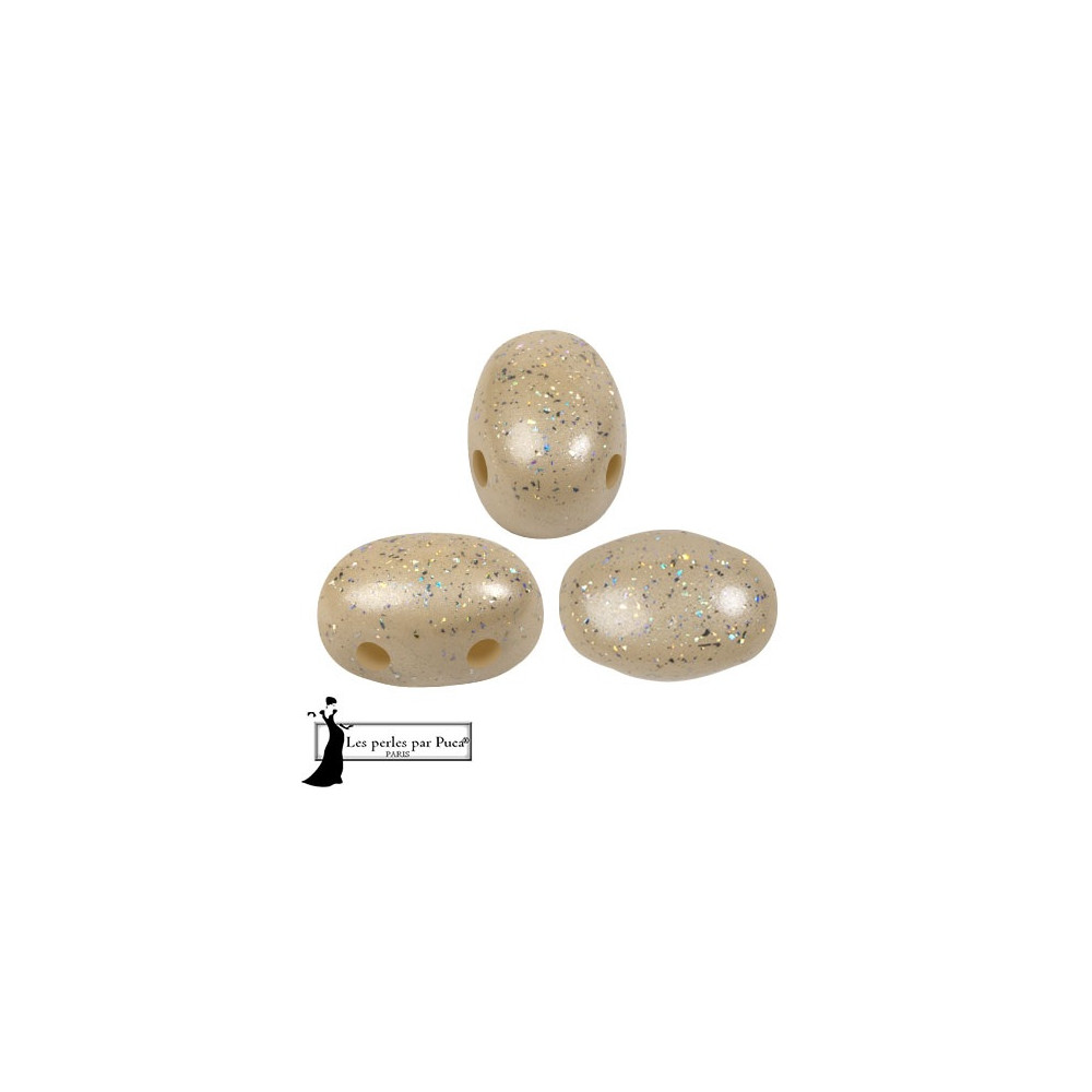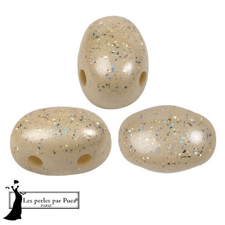 Pískově béžový odstín s magickými odlesky hvězdného prachu vdechne vašim šperkům nádech noční oblohy i elegantní jemnosti. Elegantní tvar Samos® par Puca® o rozměru 5 x 7 mm vyniká svou jemně zaoblenou konturou, která v náročných vzorech působí velmi organicky. Tyto české skleněné korálky byly navrženy francouzskou designérkou Annick Puca tak, aby dokonale doplňovaly další tvary z kolekce, jako jsou například Amos® par Puca® nebo Minos® par Puca®. Při tvorbě složitých náhrdelníků oceníte, jak hladce tyto prvky přiléhají ke Cabochon® par Puca®, čímž vytvářejí precizní geometrické ornamenty a luxusní vzhled.