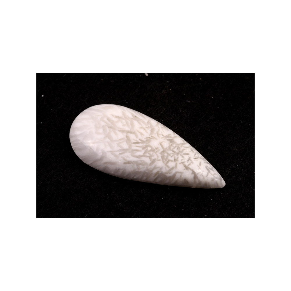 Kabošon z přírodního kamene White Scolecite (Bílý Skolecit, Indie) Velikost cca 30x21x8 mm...