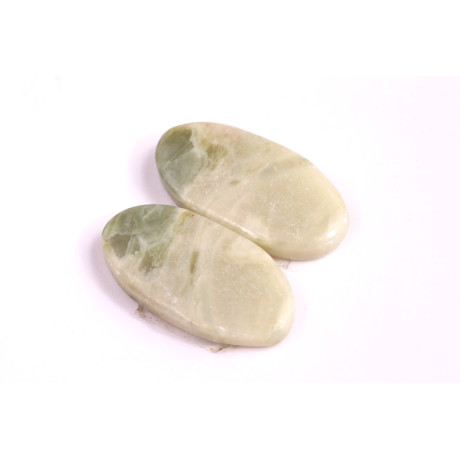 Párové kabošony z přírodního kamene Septarian přinášejí do šperků harmonii a krásu přírodních barevných tónů. Tento kámen, známý svými jemnými zelenými a krémovými pruhy, vytváří uklidňující a elegantní vzhled, který připomíná klidné scenérie přírody. Každý pár kabošonů je vyroben z jednoho kusu kamene, aby k sobě perfektně ladily, což je činí ideálními pro výrobu náušnic.