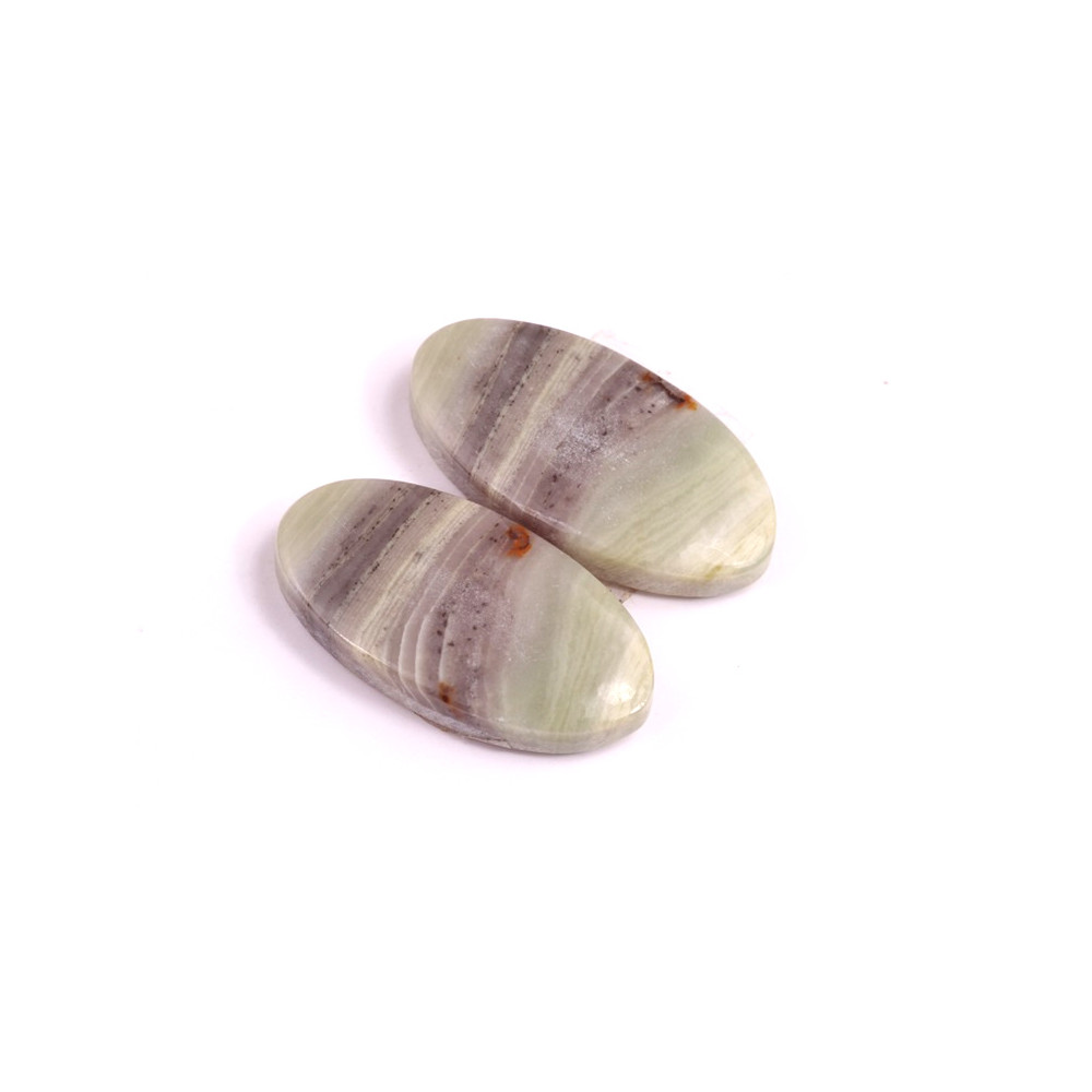 Párové kabošony z přírodního kamene Septarian přinášejí do šperků harmonii a krásu přírodních barevných tónů. Tento kámen, známý svými jemnými zelenými a krémovými pruhy, vytváří uklidňující a elegantní vzhled, který připomíná klidné scenérie přírody. Každý pár kabošonů je vyroben z jednoho kusu kamene, aby k sobě perfektně ladily, což je činí ideálními pro výrobu náušnic.