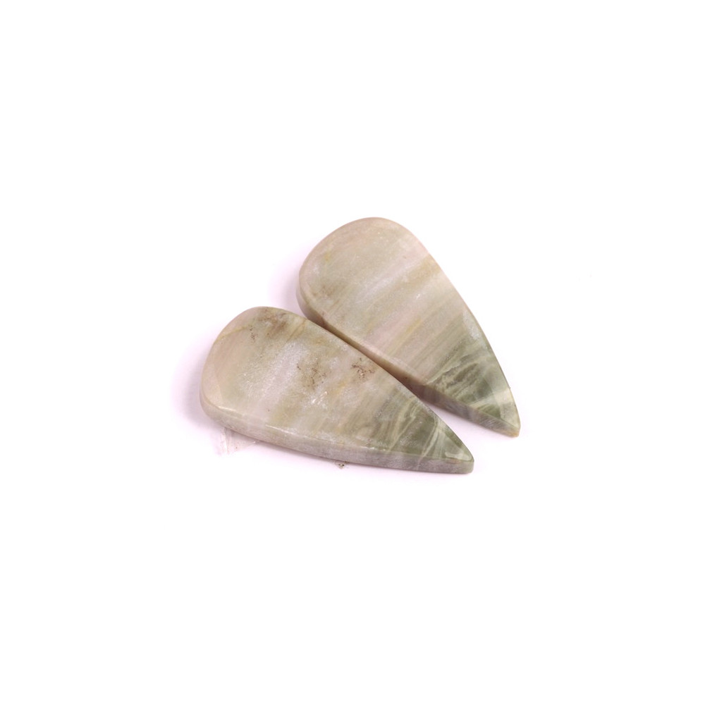 Párové kabošony z přírodního kamene Septarian přinášejí do šperků harmonii a krásu přírodních barevných tónů. Tento kámen, známý svými jemnými zelenými a krémovými pruhy, vytváří uklidňující a elegantní vzhled, který připomíná klidné scenérie přírody. Každý pár kabošonů je vyroben z jednoho kusu kamene, aby k sobě perfektně ladily, což je činí ideálními pro výrobu náušnic.