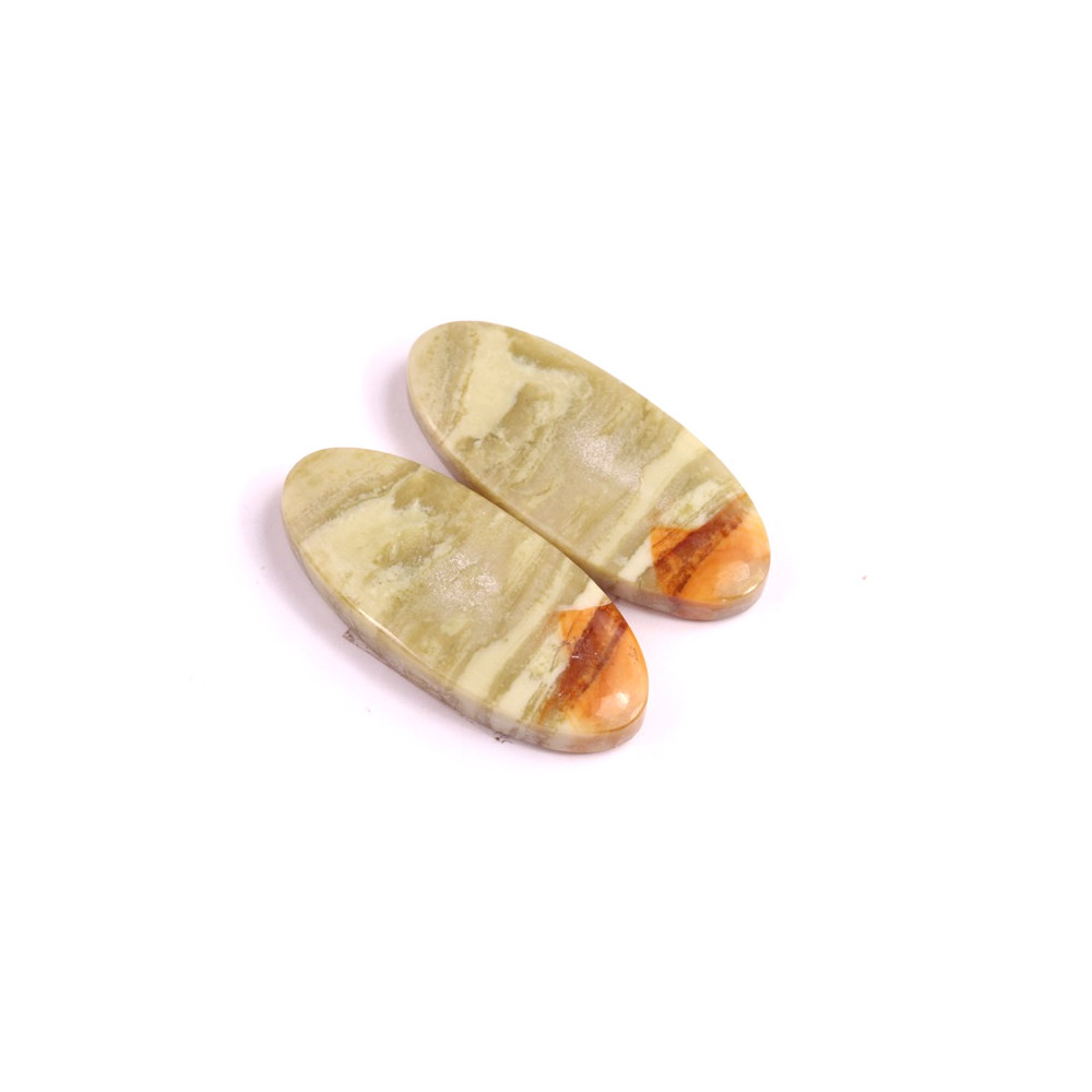Párové kabošony z přírodního kamene Septarian přinášejí do šperků harmonii a krásu přírodních barevných tónů. Tento kámen, známý svými jemnými zelenými a krémovými pruhy, vytváří uklidňující a elegantní vzhled, který připomíná klidné scenérie přírody. Každý pár kabošonů je vyroben z jednoho kusu kamene, aby k sobě perfektně ladily, což je činí ideálními pro výrobu náušnic.