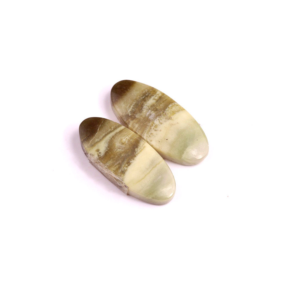Párové kabošony z přírodního kamene Septarian přinášejí do šperků harmonii a krásu přírodních barevných tónů. Tento kámen, známý svými jemnými zelenými a krémovými pruhy, vytváří uklidňující a elegantní vzhled, který připomíná klidné scenérie přírody. Každý pár kabošonů je vyroben z jednoho kusu kamene, aby k sobě perfektně ladily, což je činí ideálními pro výrobu náušnic.