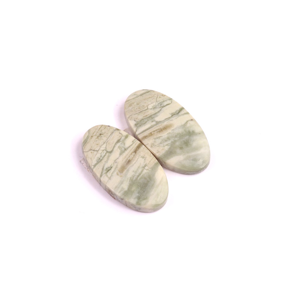 Párové kabošony z přírodního kamene Septarian přinášejí do šperků harmonii a krásu přírodních barevných tónů. Tento kámen, známý svými jemnými zelenými a krémovými pruhy, vytváří uklidňující a elegantní vzhled, který připomíná klidné scenérie přírody. Každý pár kabošonů je vyroben z jednoho kusu kamene, aby k sobě perfektně ladily, což je činí ideálními pro výrobu náušnic.