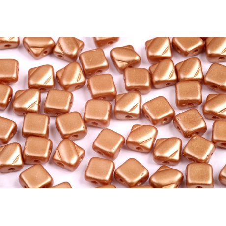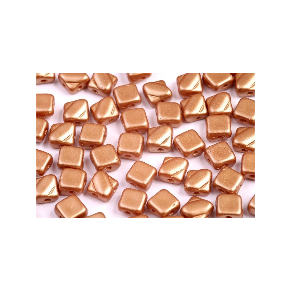 Silky Beads Dia jsou unikátní kosočtvercové korálky, které obohatí vaše šperkařské projekty o nový geometrický rozměr. Tyto korálky mají velikost 6x6 mm a jsou charakteristické svým plochým kosočtvercovým tvarem s mírně zkosenými rohy, což jim dodává elegantní a sofistikovaný vzhled. Každý korálek má dvě protilehlé otvory umístěné na širokých stranách kosočtverce, což umožňuje snadné propojení s ostatními korálky a vytváření plynulých, těsných spojení.