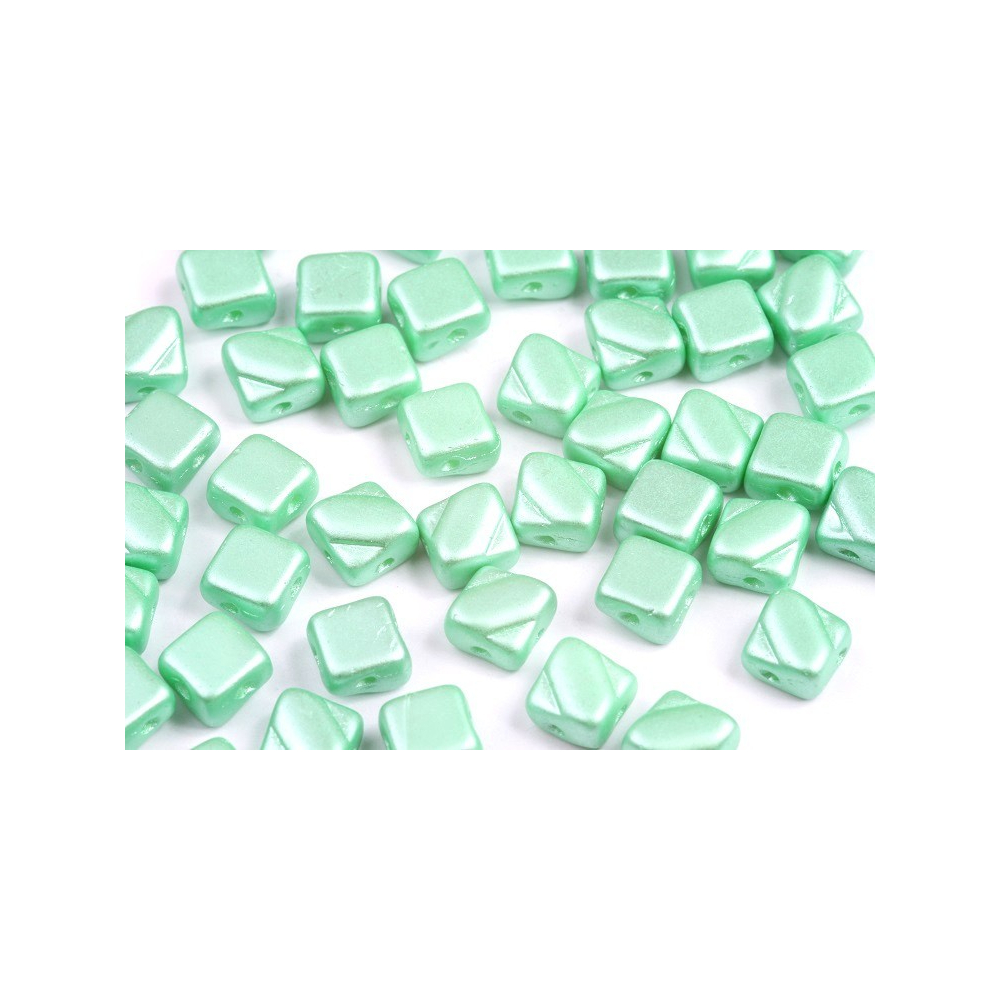 Silky Beads Dia jsou unikátní kosočtvercové korálky, které obohatí vaše šperkařské projekty o nový geometrický rozměr. Tyto korálky mají velikost 6x6 mm a jsou charakteristické svým plochým kosočtvercovým tvarem s mírně zkosenými rohy, což jim dodává elegantní a sofistikovaný vzhled. Každý korálek má dvě protilehlé otvory umístěné na širokých stranách kosočtverce, což umožňuje snadné propojení s ostatními korálky a vytváření plynulých, těsných spojení.