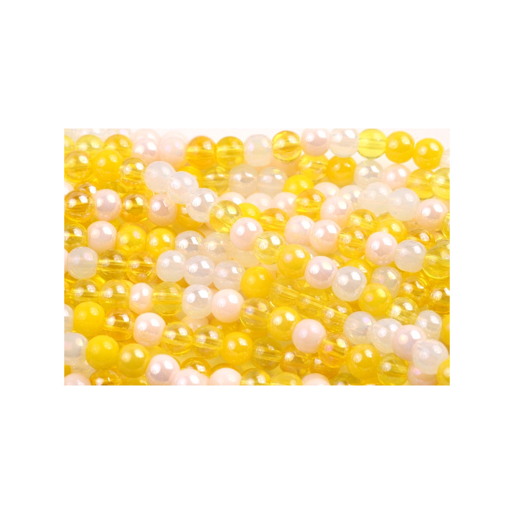 Korálky kuličky Velikost 4 mm Velikost průtahu: 0,8 mm Balení: 60 ks Barva: žlutá Materiál: sklo...