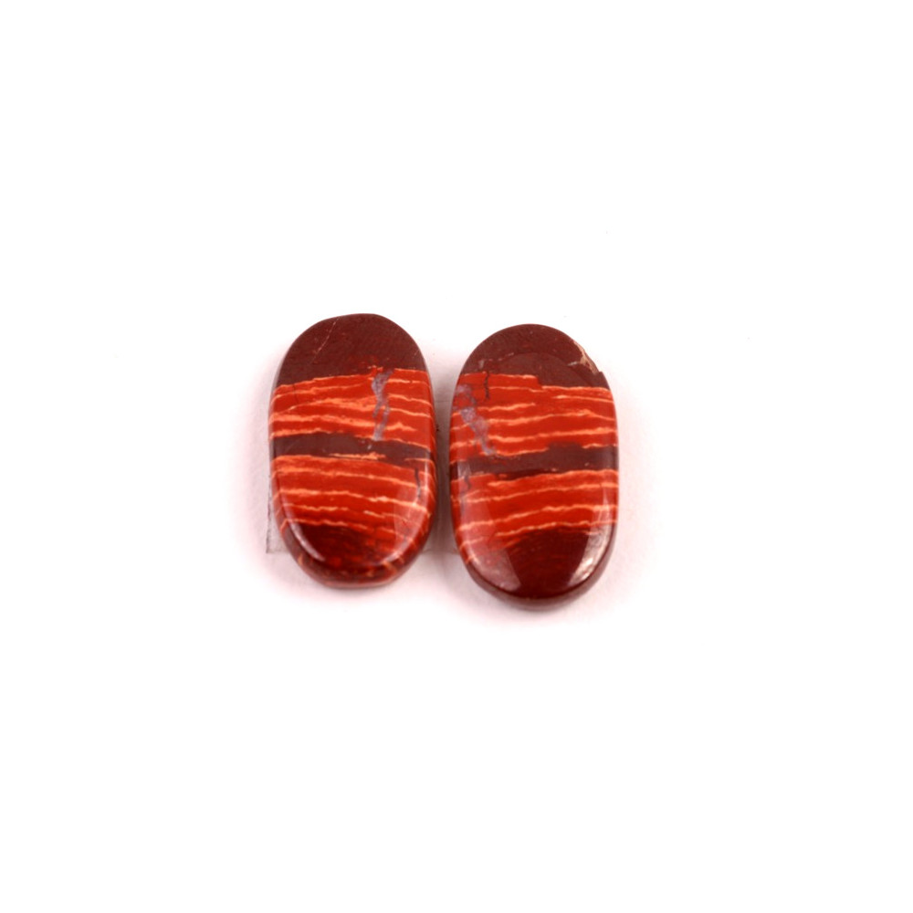 Párové kabošony z přírodního kamene Snake Skin Jasper (Hadí jaspis) jsou jedinečným materiálem pro tvorbu šperků, které zaujmou svou nádhernou barevnou strukturou a hlubokým přírodním leskem. Hadí jaspis dostal svůj název díky svému jedinečnému vzoru, který připomíná hadí kůži – jemné linie a struktura tohoto kamene vytváří opticky fascinující vzhled, který je plný přírodních a zemitých odstínů červené a oranžové.