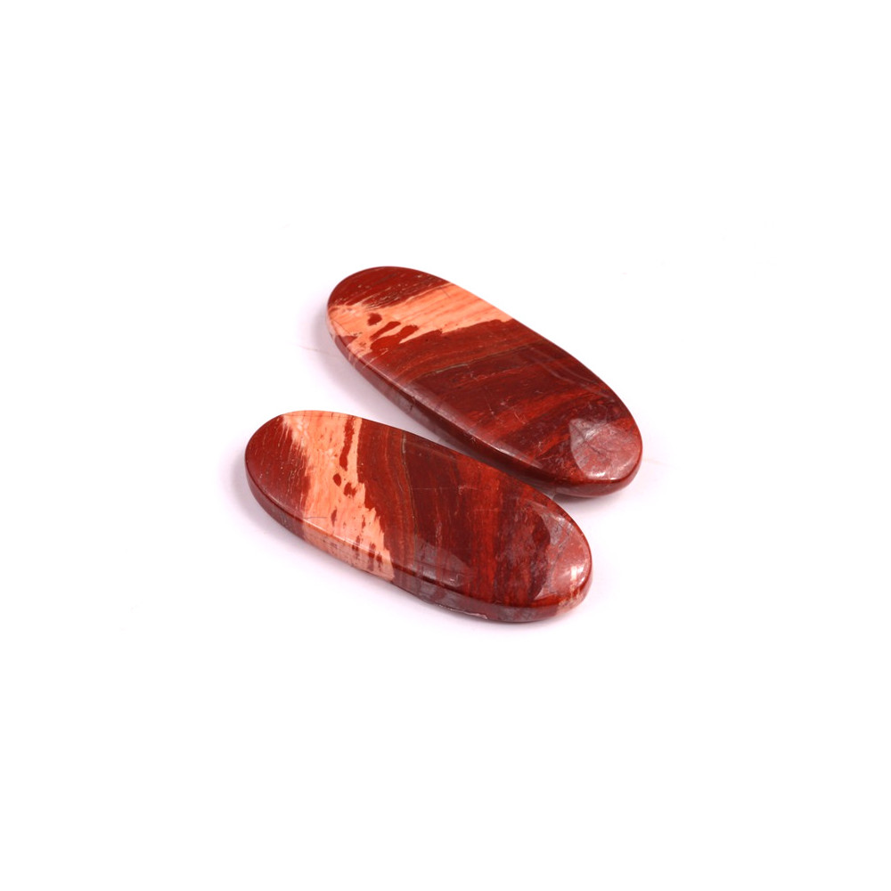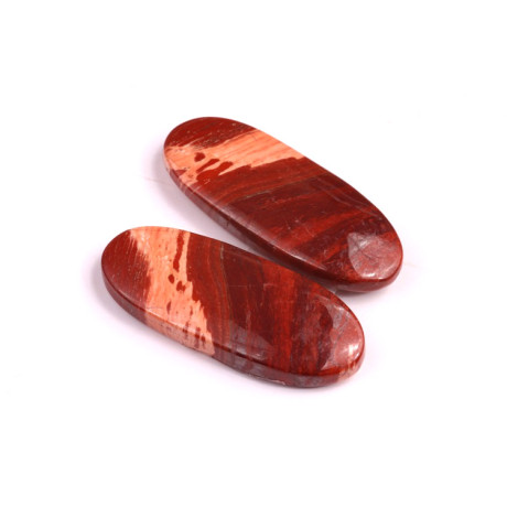 Párové kabošony z přírodního kamene Snake Skin Jasper (Hadí jaspis) jsou jedinečným materiálem pro tvorbu šperků, které zaujmou svou nádhernou barevnou strukturou a hlubokým přírodním leskem. Hadí jaspis dostal svůj název díky svému jedinečnému vzoru, který připomíná hadí kůži – jemné linie a struktura tohoto kamene vytváří opticky fascinující vzhled, který je plný přírodních a zemitých odstínů červené a oranžové.