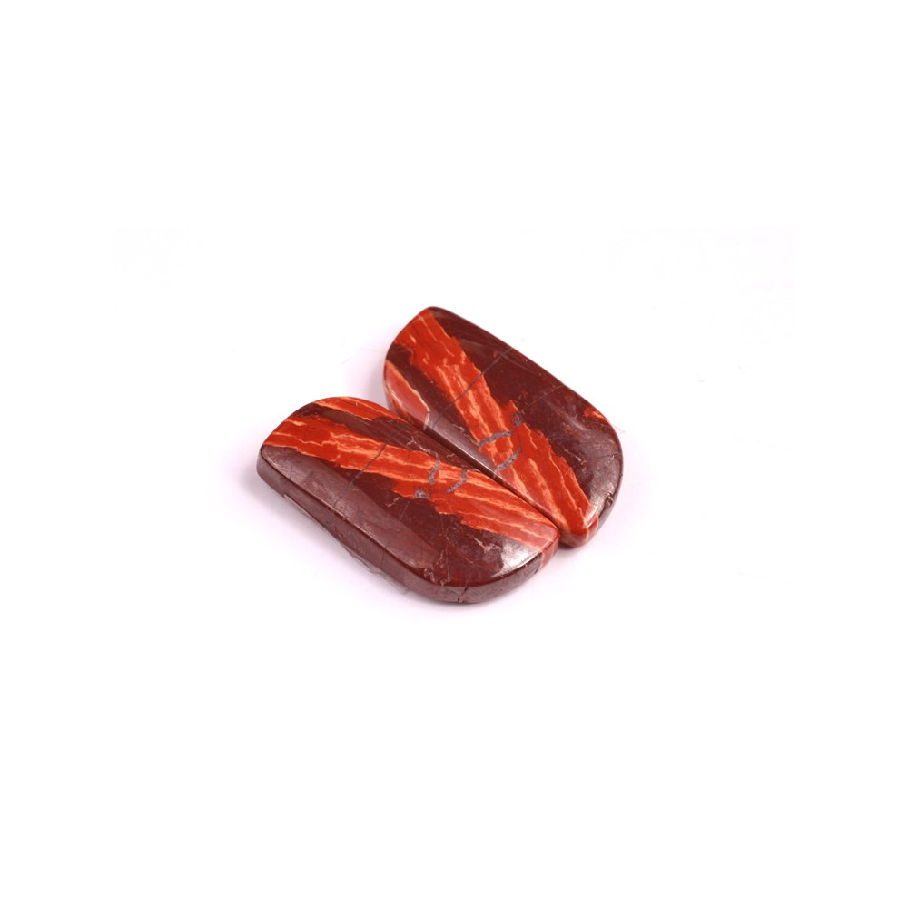 Párové kabošony z přírodního kamene Snake Skin Jasper (Hadí jaspis) jsou jedinečným materiálem pro tvorbu šperků, které zaujmou svou nádhernou barevnou strukturou a hlubokým přírodním leskem. Hadí jaspis dostal svůj název díky svému jedinečnému vzoru, který připomíná hadí kůži – jemné linie a struktura tohoto kamene vytváří opticky fascinující vzhled, který je plný přírodních a zemitých odstínů červené a oranžové.