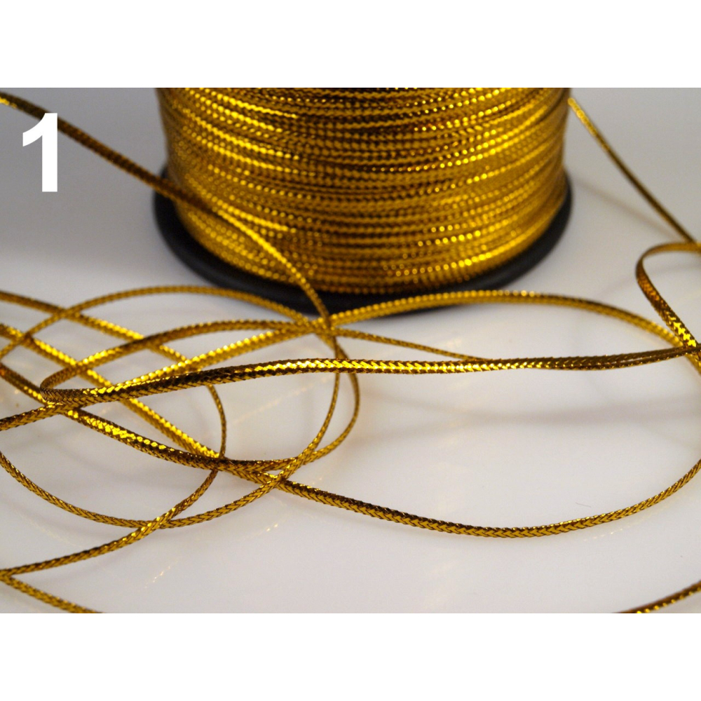 Šňůra s lurexem 0,8 mm Průměr: 0,8 mm Balení: 5 metrů Barva: zlatá Původ: Čína