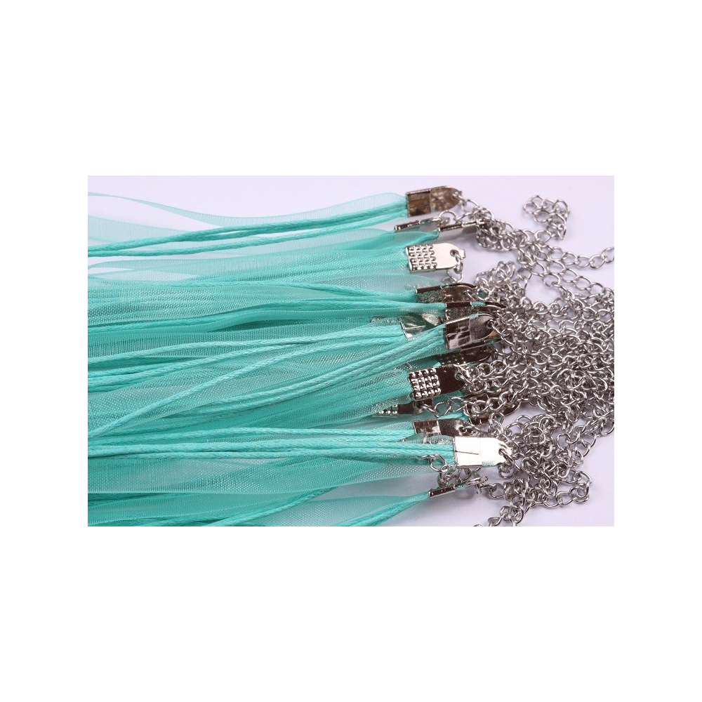 Šňůrka na na krk s šifonem Délka 45 cm + 5 cm Cena za: 1 ls Barva: světle modrá