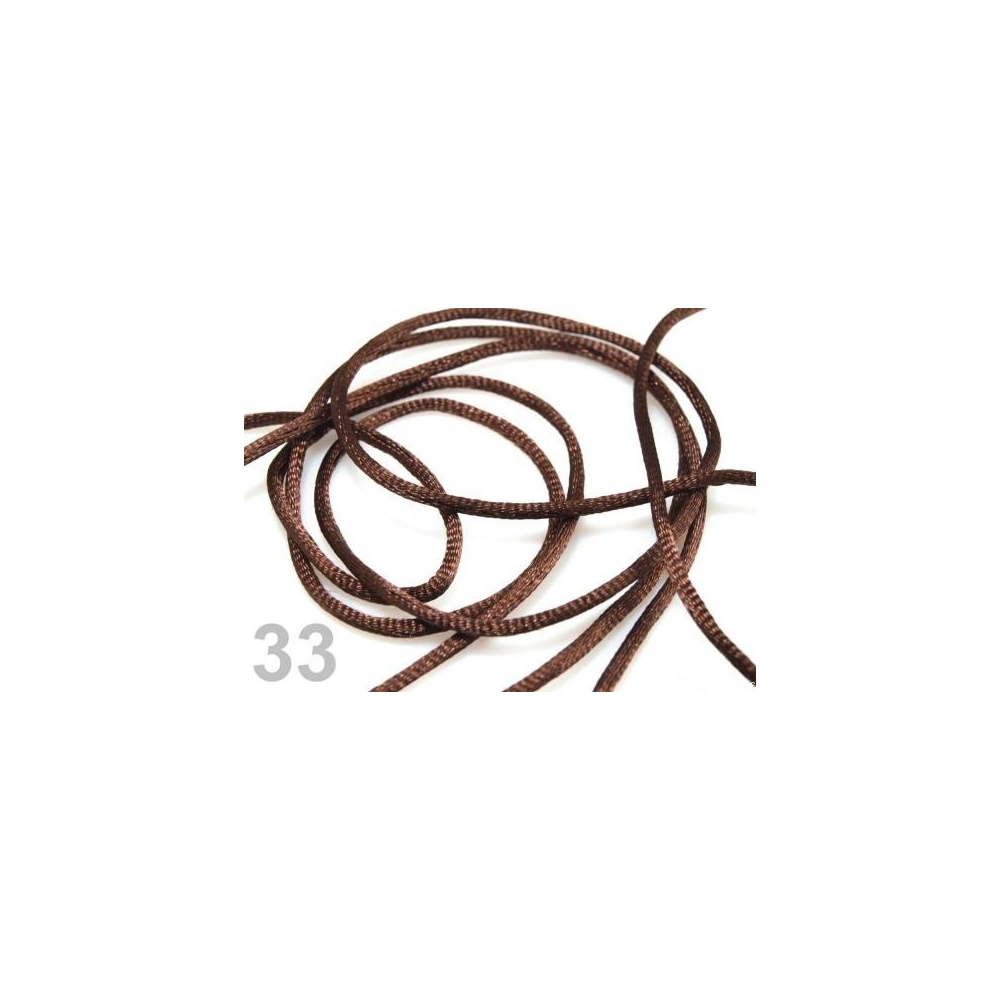 Šňůrka saténová 2 mm Průměr: 2 mm Balení: 20 metrů Barva: hnědá Materiál: Nylon Původ: Čína