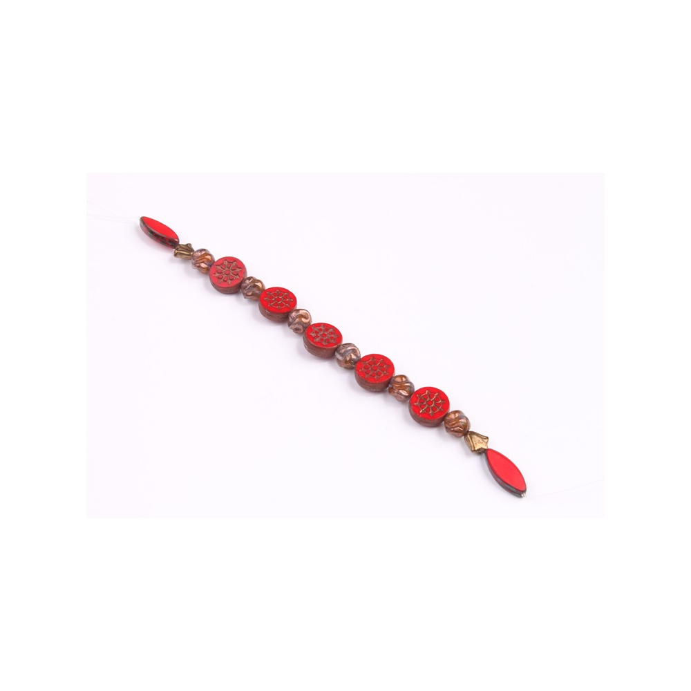Mix skleněných korálků ploškovaných, mačkaných a broušených.Délka šňůrky 15 -16cm