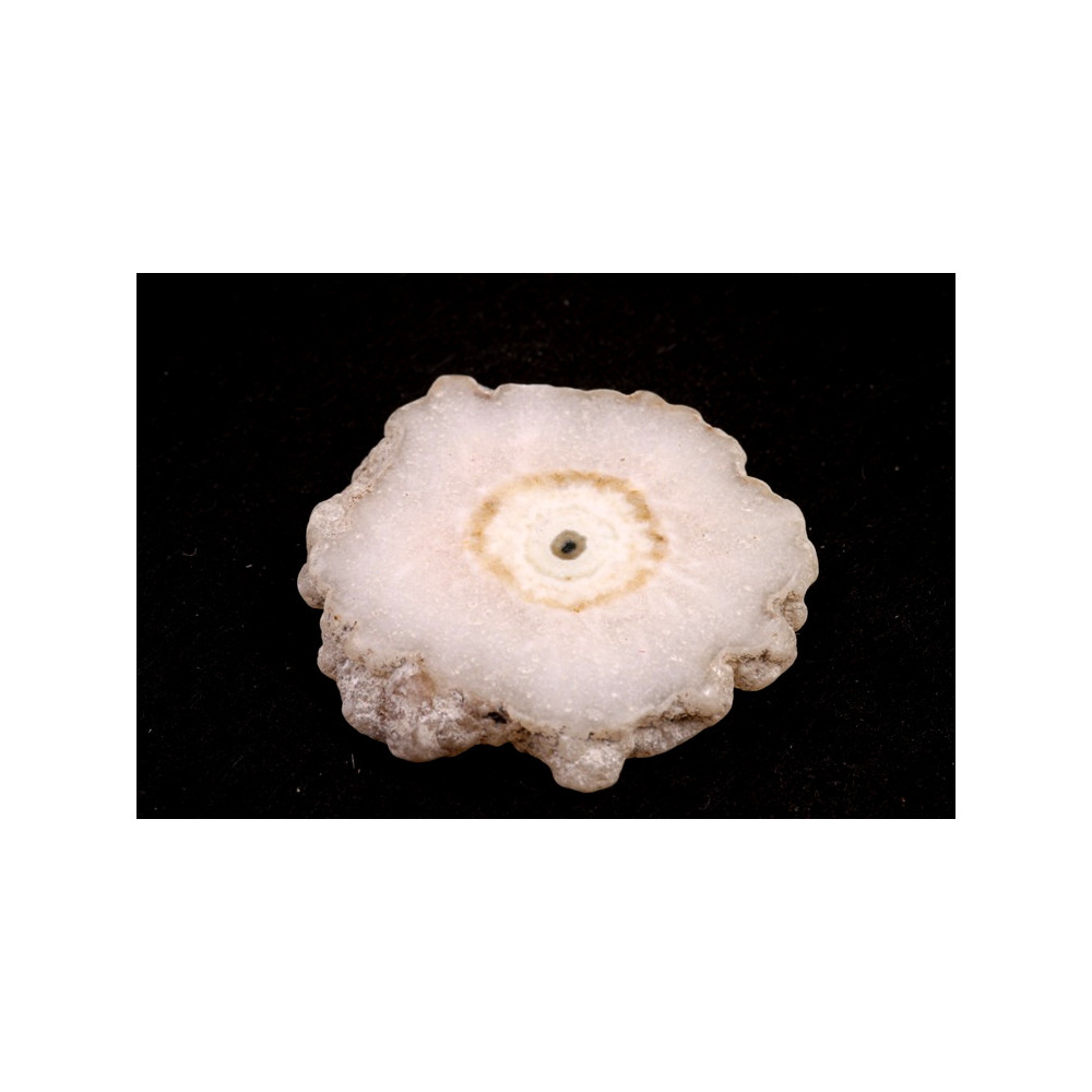 Kabošon z přírodního kamene Solar Quartz je jedinečným příkladem přírodní krásy a elegance. Tento minerál vzniká z křemenných krystalů, které se tvoří uvnitř geod a vytvářejí fascinující kruhové obrazy. Solar Quartz se často vyznačuje světle bílou až průsvitnou základní barvou, doplněnou jemnými inkluzemi, které mohou zahrnovat odstíny zelené, růžové či hnědé, což z něj činí klenot s jedinečnou barevnou strukturou. Právě tyto nepravidelné vzory a vrstvení mu dodávají zvláštní hloubku a přitažlivost.
