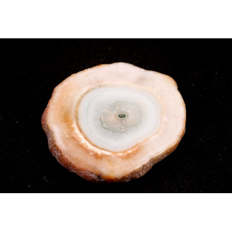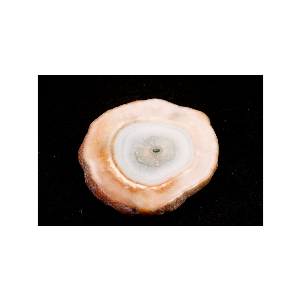 Kabošon z přírodního kamene Solar Quartz je jedinečným příkladem přírodní krásy a elegance. Tento minerál vzniká z křemenných krystalů, které se tvoří uvnitř geod a vytvářejí fascinující kruhové obrazy. Solar Quartz se často vyznačuje světle bílou až průsvitnou základní barvou, doplněnou jemnými inkluzemi, které mohou zahrnovat odstíny zelené, růžové či hnědé, což z něj činí klenot s jedinečnou barevnou strukturou. Právě tyto nepravidelné vzory a vrstvení mu dodávají zvláštní hloubku a přitažlivost.