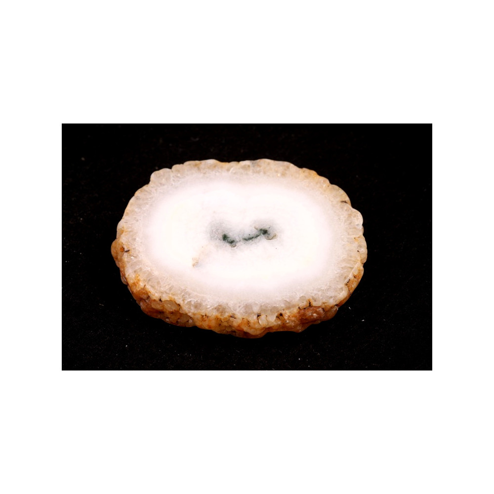 Kabošon z přírodního kamene Solar Quartz je jedinečným příkladem přírodní krásy a elegance. Tento minerál vzniká z křemenných krystalů, které se tvoří uvnitř geod a vytvářejí fascinující kruhové obrazy. Solar Quartz se často vyznačuje světle bílou až průsvitnou základní barvou, doplněnou jemnými inkluzemi, které mohou zahrnovat odstíny zelené, růžové či hnědé, což z něj činí klenot s jedinečnou barevnou strukturou. Právě tyto nepravidelné vzory a vrstvení mu dodávají zvláštní hloubku a přitažlivost.