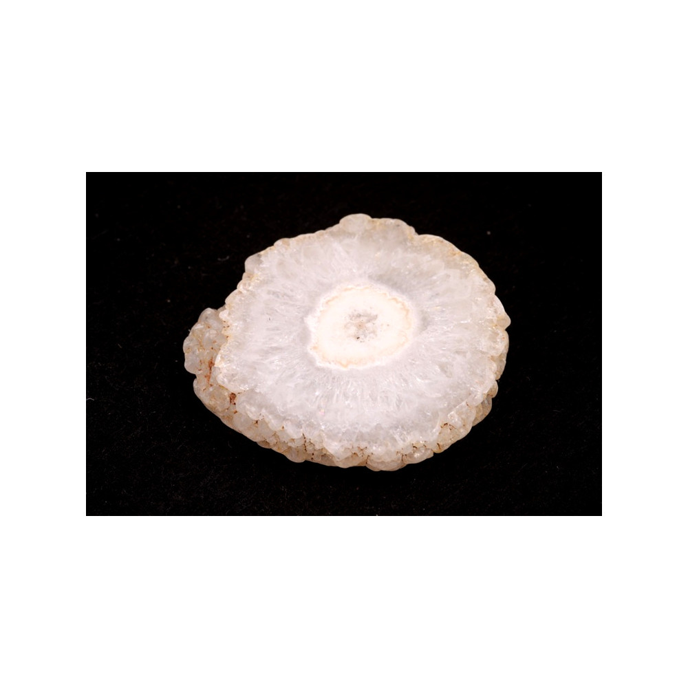 Kabošon z přírodního kamene Solar Quartz je jedinečným příkladem přírodní krásy a elegance. Tento minerál vzniká z křemenných krystalů, které se tvoří uvnitř geod a vytvářejí fascinující kruhové obrazy. Solar Quartz se často vyznačuje světle bílou až průsvitnou základní barvou, doplněnou jemnými inkluzemi, které mohou zahrnovat odstíny zelené, růžové či hnědé, což z něj činí klenot s jedinečnou barevnou strukturou. Právě tyto nepravidelné vzory a vrstvení mu dodávají zvláštní hloubku a přitažlivost.