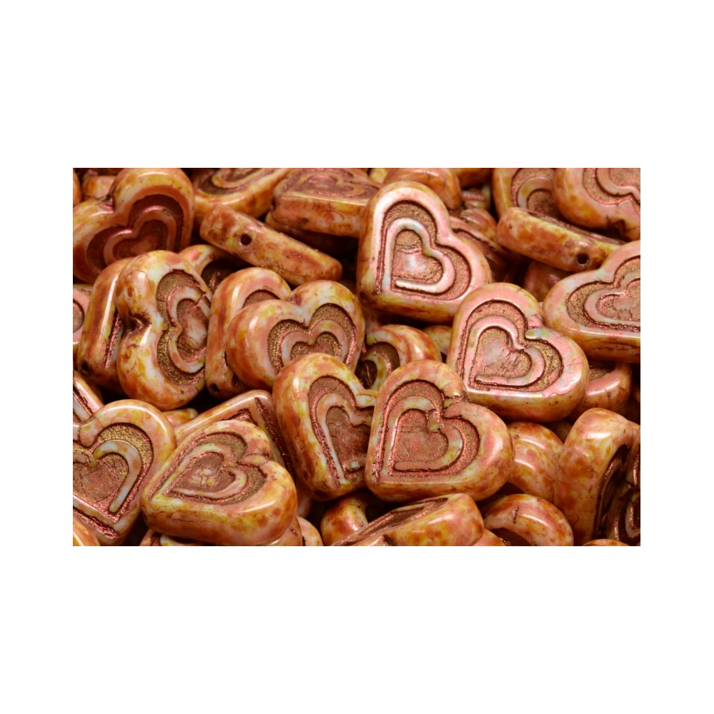 Heart In Heart Beads 14x16 mm – Skleněné mačkané korálky s dvojitým srdcem od Rutkovský