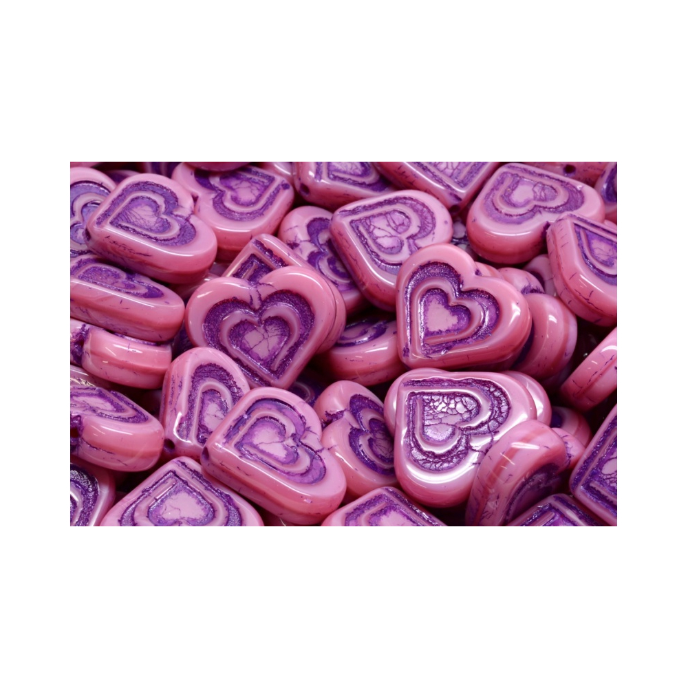 Heart In Heart Beads 14x16 mm – Skleněné mačkané korálky s dvojitým srdcem od Rutkovský